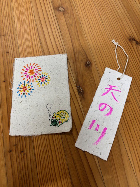草原学習館では、6/28(土)にお楽しみ企画「七夕飾りを作ろう!手漉きの紙で短冊つくり」を実施しました。